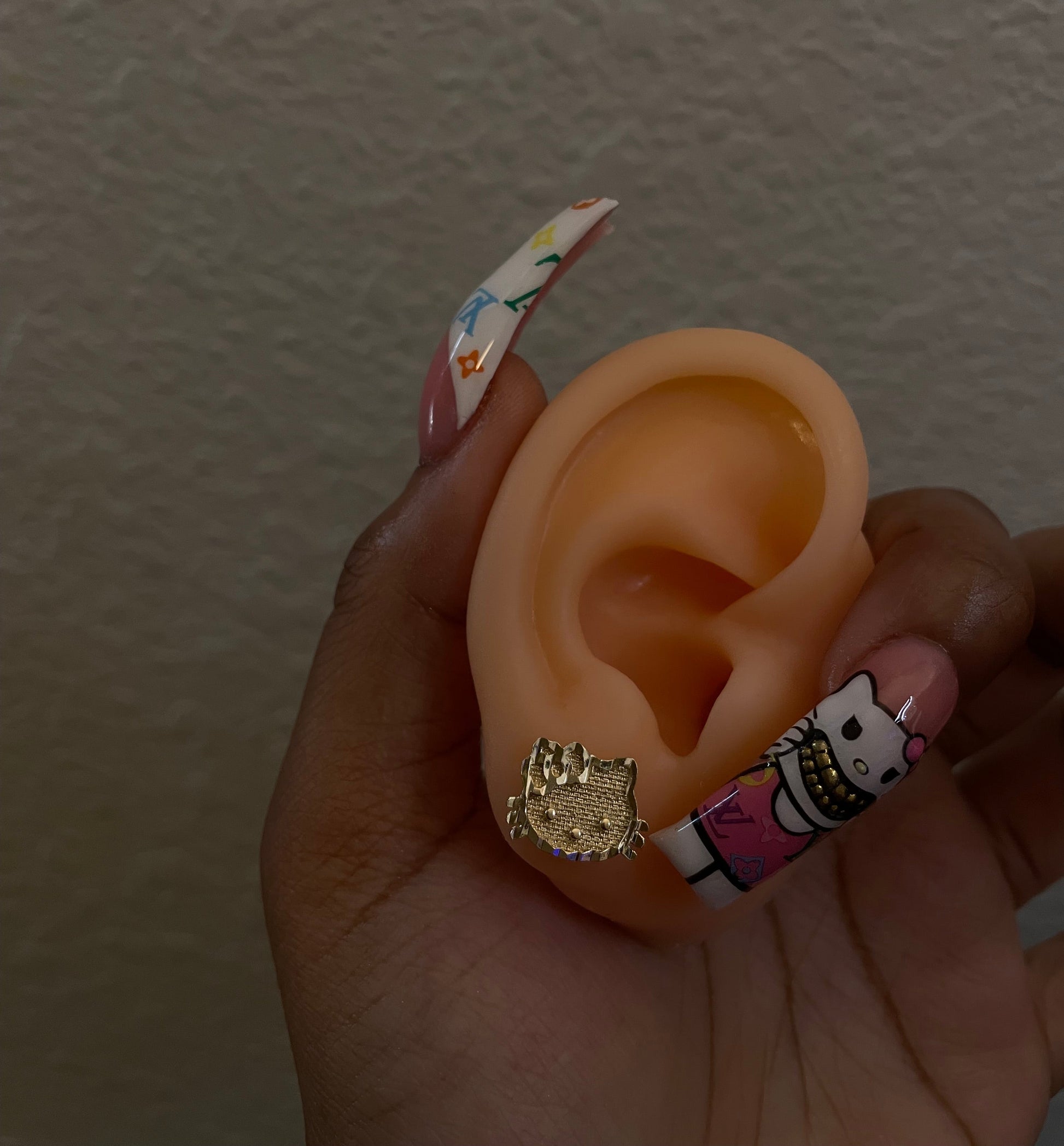 These HK face earrings feature the iconic HK design in a small, stylish earring. Perfect for adding a playful, designer inspired touch to any outfit while staying lightweight and comfortable for everyday wear.